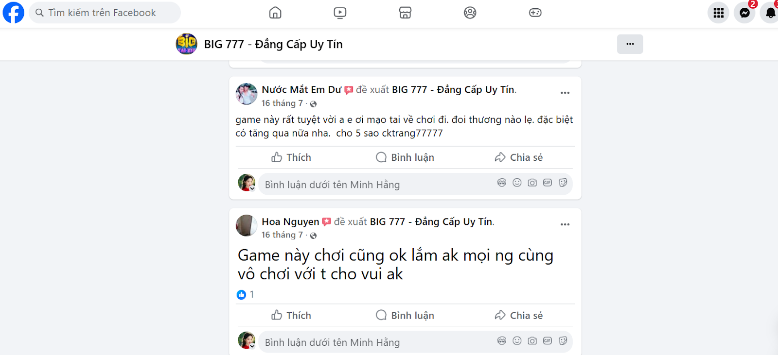 - Người chơi Nguyễn Thị Lợi chia sẻ: “big777 game uy tín nên chọn.”