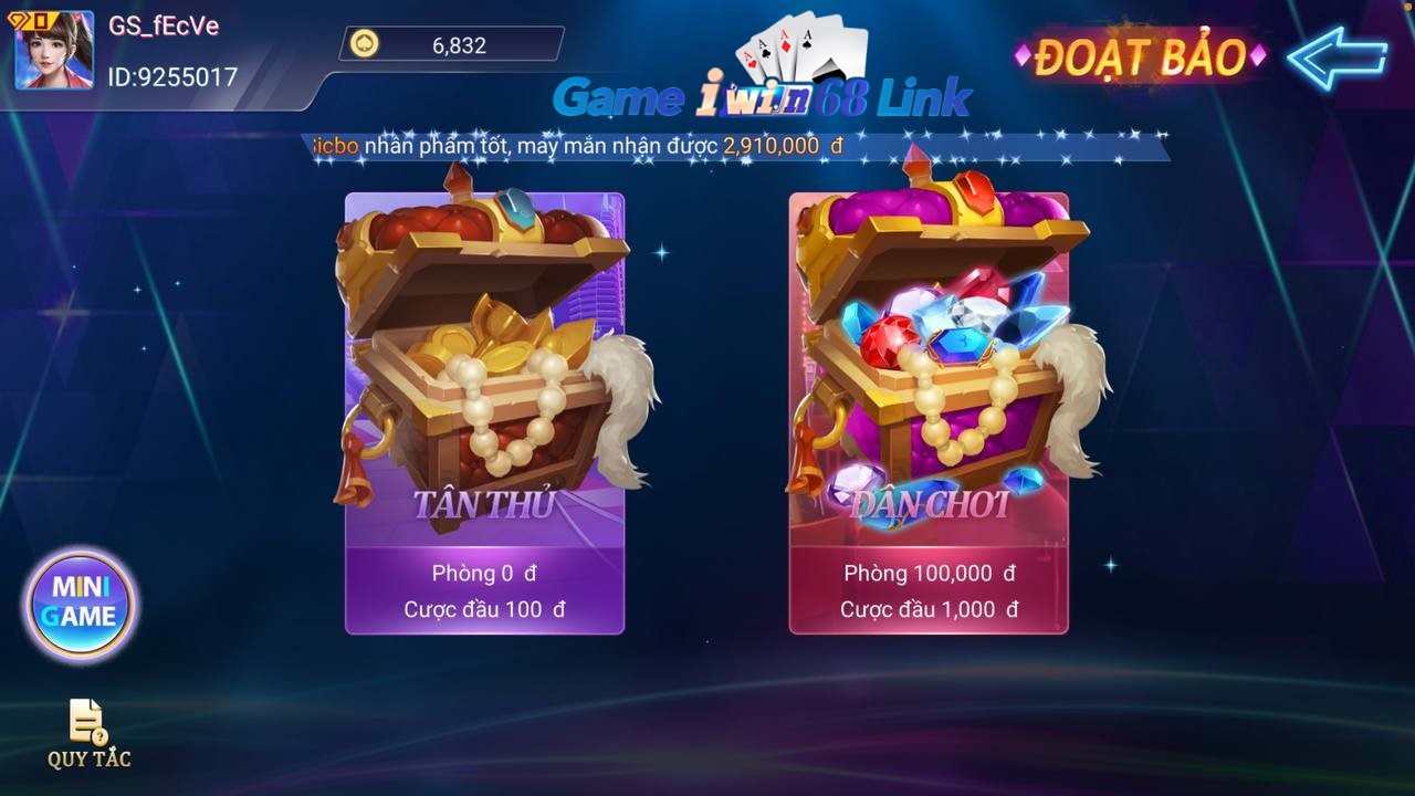 IWIN68 thiết kế 2 phòng chơi với các mức cược khác nhau để bạn tham gia lựa chọn như sau: